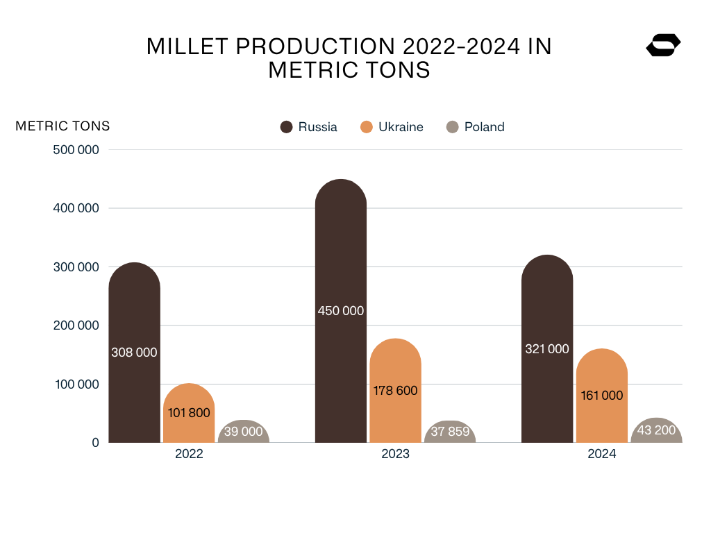 Poland ranks third among European producers, delivering a steady but modest volume of 43,200 tons in 2024. While interest in millet cultivation remains stable, there is hope for further expansion in the coming years.